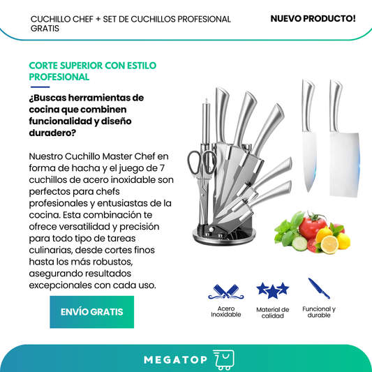 MasterChef: Cuchillo CHEF + GRATIS SET DE 7 PIEZAS