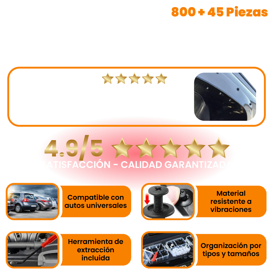 Este sistema de fijación está desarrollado bajo principios de ajuste estructural y distribución de carga, cubriendo los diámetros más utilizados en parachoques, molduras y paneles. Su plástico técnico de alta resistencia absorbe vibraciones y soporta exposición continua, asegurando fijaciones estables, seguras y duraderas sin aflojarse con el uso.
